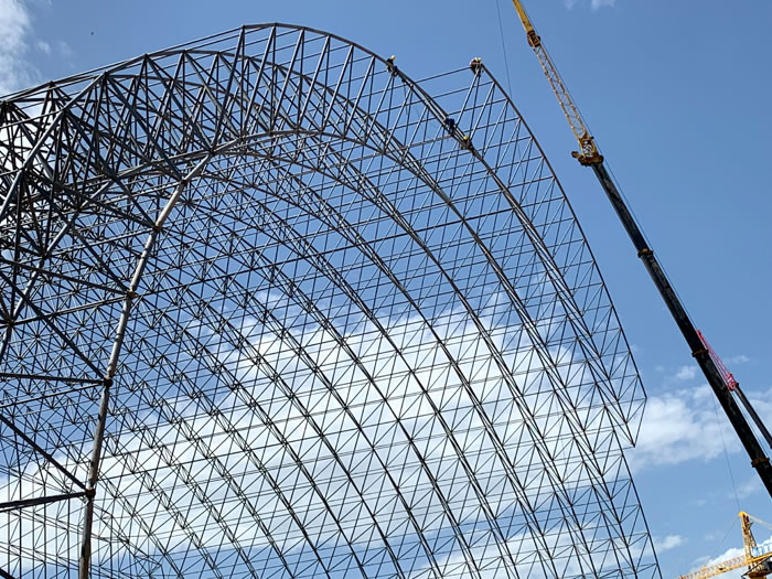 (2)网架加工前应对现场尺寸进行复测,确认无误后方可进行加工、安装;网架制作、运输、安装应遵守《空间网格结构技术规程》JGJ7-2010、《钢网架梅州螺栓球节点》JG/T 10-2009、《钢网架梅州螺栓球节点用高强度螺栓》 GB/T 16939-2016、《梅州钢结构梅州工程梅州施工规范》 GB50755-2012、《梅州钢结构梅州工程施工质量验收标准》 GB50205-2020。